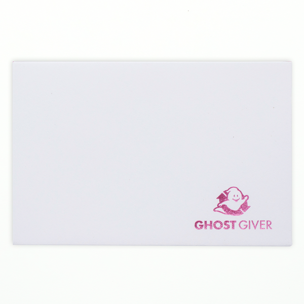 Awesome. Pick up a 12-pack of our full-color, foil-stamped Ghost Giver cards and envelopes to create your own anonymous giving moments. Leave one behind with a surprise or include it with something you send—these cards can go with literally anything.