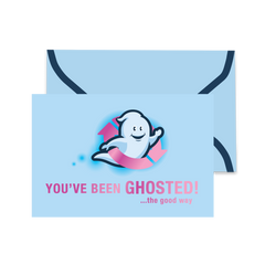 Ghost someone the good way with this 12-pack of baby blue + pink foil cards (includes envelopes trimmed in pink foil). Packed with all the pluses, like being pre-coded for anonymous messaging (and maybe a thank you for you!) and a “Got it” confirmation, it's the ultimate Ghost Giver experience. Just tear, share, and repeat!